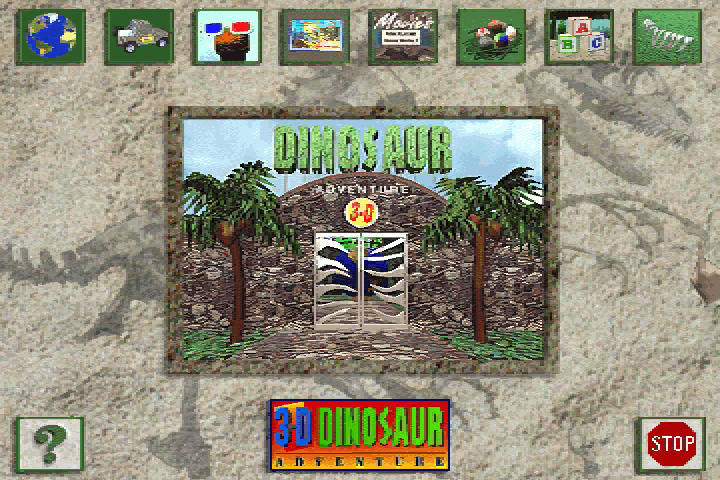 The opening movie, the Dinosaur Encyclopedia and the 3-D Dinosaur Museum.