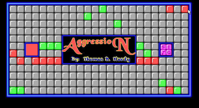 Aggression is a board game that combines some of the aspects of checkers and backgammon. The object is to get all of your pieces from their starting side to the opposite side before your opponent does. Each time you start Aggression or select "new game" the pieces will be placed on the board in one five patterns. The pattern used will be chosen at random.