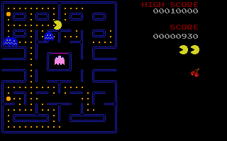 can eat the ghosts for more points. Sometimes, bonus fruit will enter the