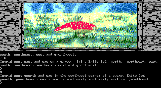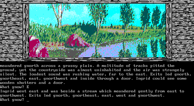 The player can use commands such as GOTO, FOLLOW, and FIND for navigation. The other characters in the game
