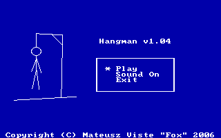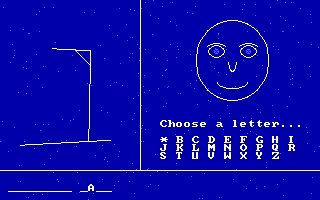 The computer chooses a random word from a file and the player has to guess it. It is possible to add own words and/or create own vocabulary files. Many vocabulary files are shipped with the game.