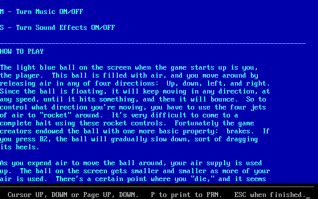 The light blue ball on the screen when the game starts up is you, the player. This ball is filled with air, and you