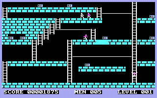 Lode Runner uses simple graphics and satisfactory sound effects. A warning note, be careful when you fall into the pit as there is no escape and it will only cost you a life.