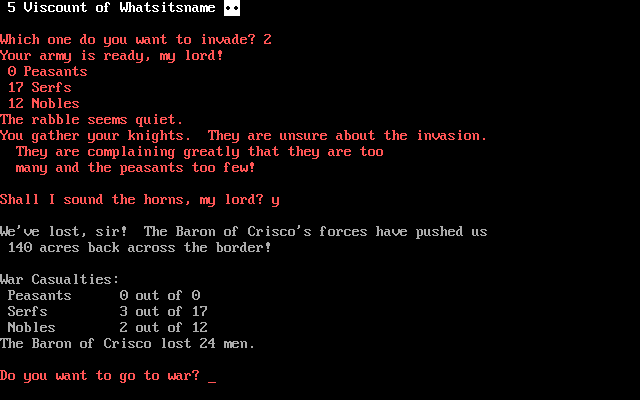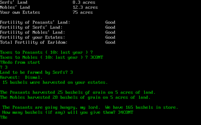 In the game, the player plays the role of the Earl of the English manor of the medieval times. Each turn of the game represents a year of your dominion. The task of the player is to administer things wisely and take important decisions. He can attack the other kingdoms and succeed his reign over his neighborhood kingdoms. Along with this, the player needs to maintain the fertility of the soil, prevent the people from starving, and avoid a situation of the plague from arising.