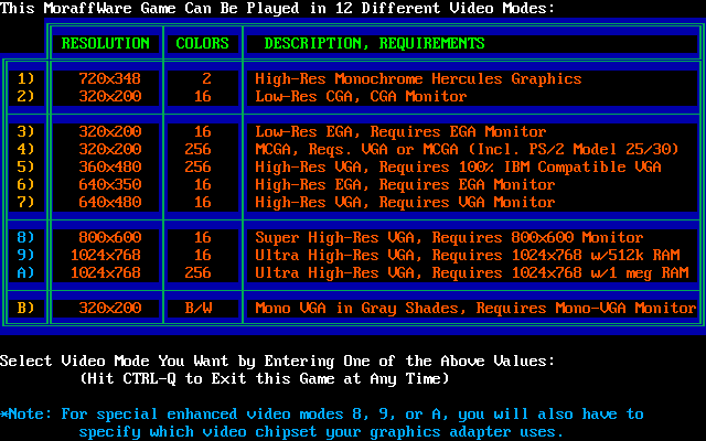 Moraff's Revenge was the company's first 3D dungeon game for the PC. Moraff's PinBall was the first computer game created by Moraffware for IBM's introduction of VGA resolution.