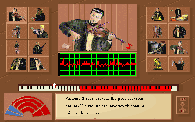 instrument and learns to adjust them to get the desired effect. The player can pick compositions of famous composers and play them on the