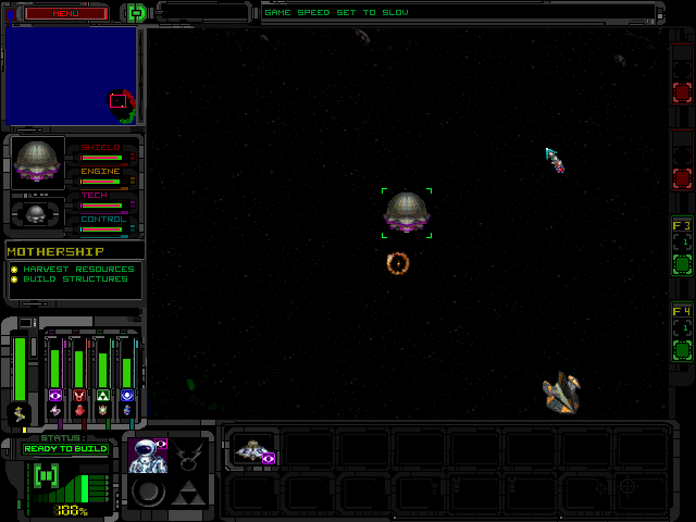 When the Mothership is near a resource, she opens her bay doors and sends out a shuttle to