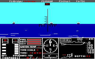 A naval war craft game set in the South Pacific Ocean during the World War 2. Up Periscope, was released for DOS, Commodore 64 and Commodore 128 platforms in the year 1986. The game was developed and published by Action soft. “The Advanced Submarine Simulator” is added to its name at the cover and credits.