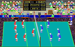 The game Volleyball Simulator was published by Rainbow Arts Software and was developed by Time Warp Software. The credits for the Computer version went to Olag Rappe and the Tactics and Artwork were created by Thomas Finlay and TV Rappe respectively. The game was released in the year 1988, on the DOS platform.